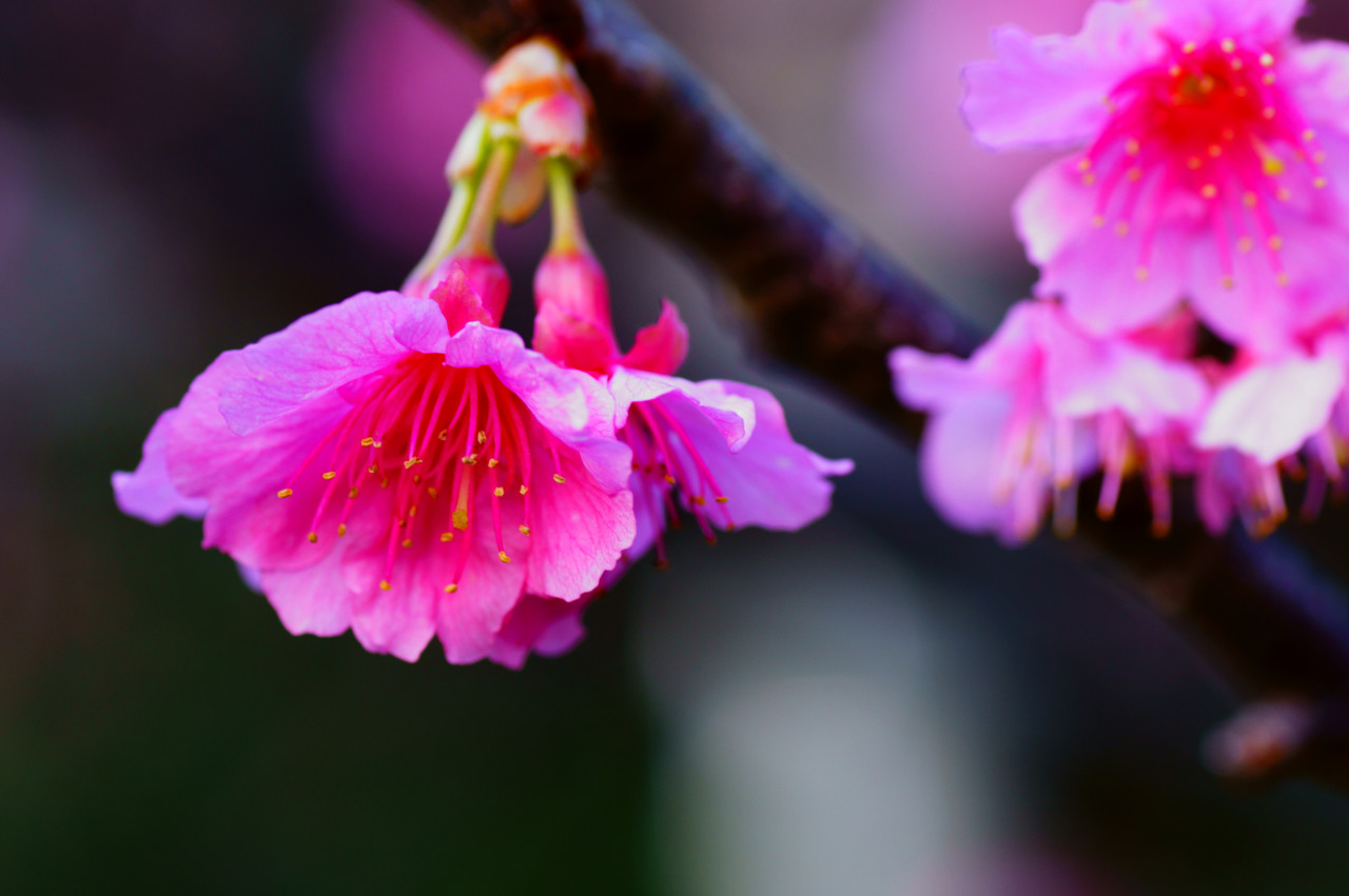 久米島の、だるま山園地の桜です。 木によってまちまちですが、3分から5分咲きくらいでした。 桜まつりの最中で、夜にはライトアップもされたようです。