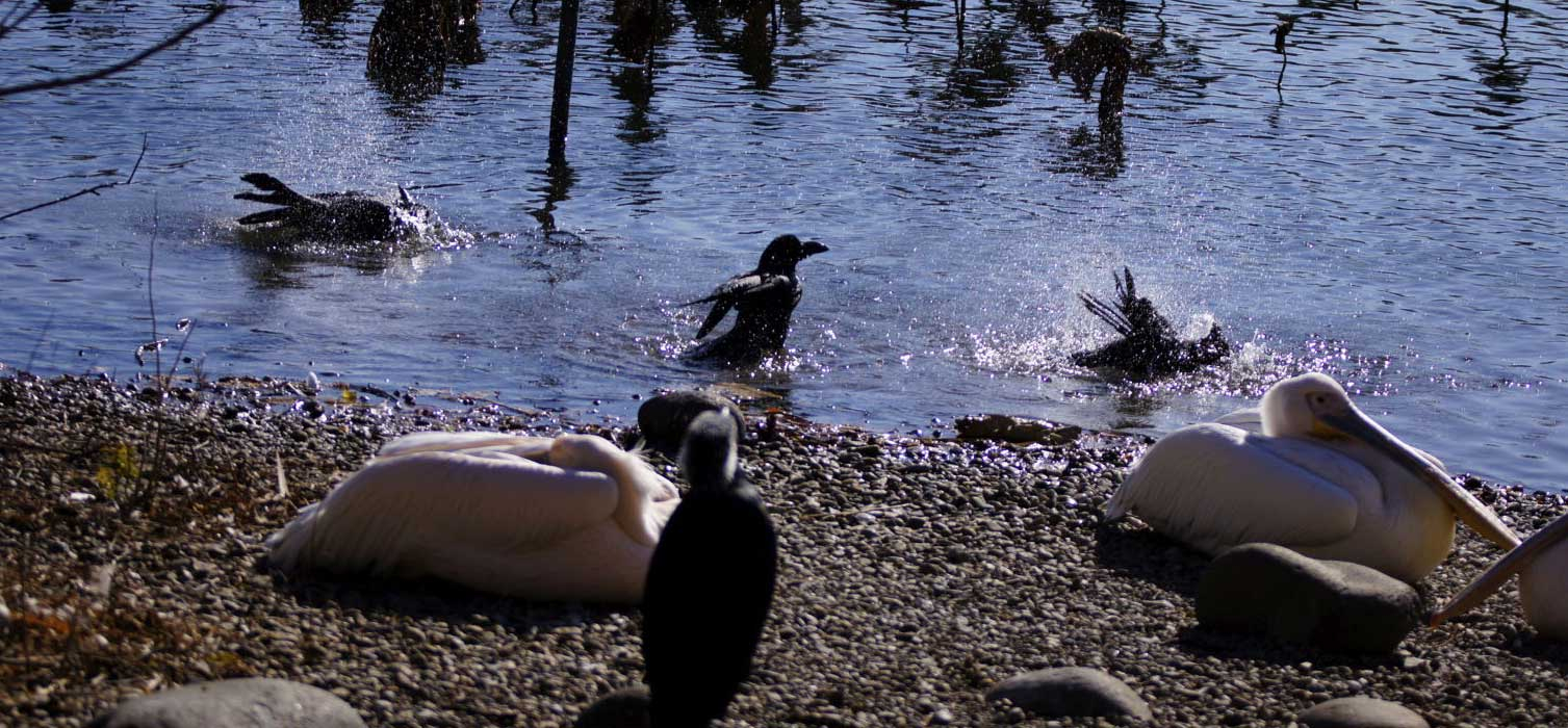 カラスの行水と言う言葉がありますが、この時のカラス達は結構ゆっくり(丁寧に)水浴びしてました。 撮影日は12月27日です。