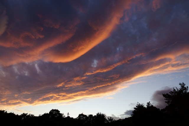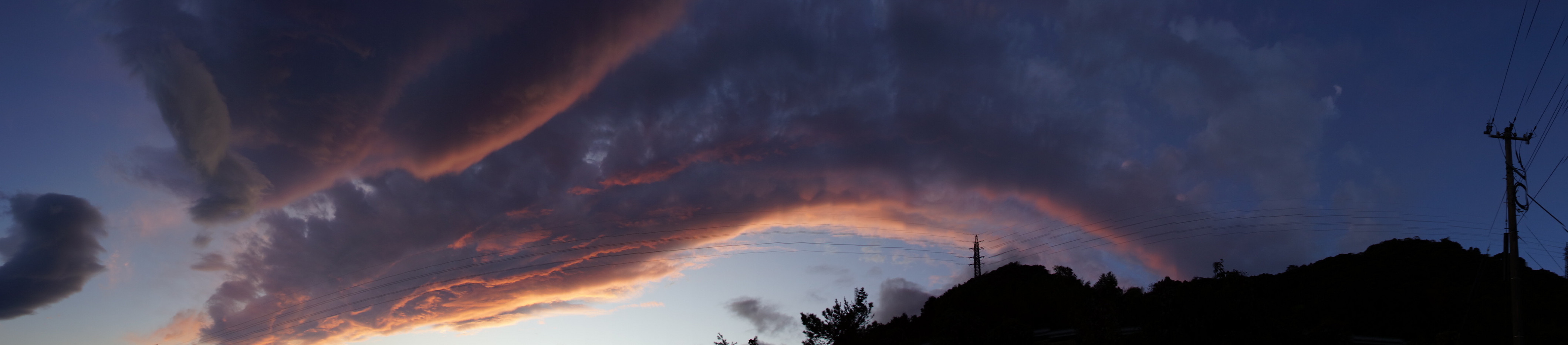 近くに沸いた雲です。夕日と相まってもののけの様でした。 全体撮るための仕方なしのパノラマ