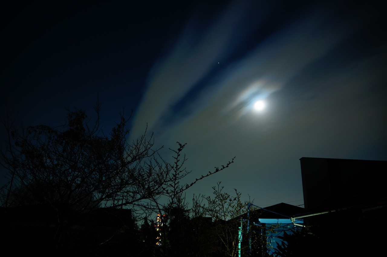 おぼろ月夜。 左上にあるのは、火星です。