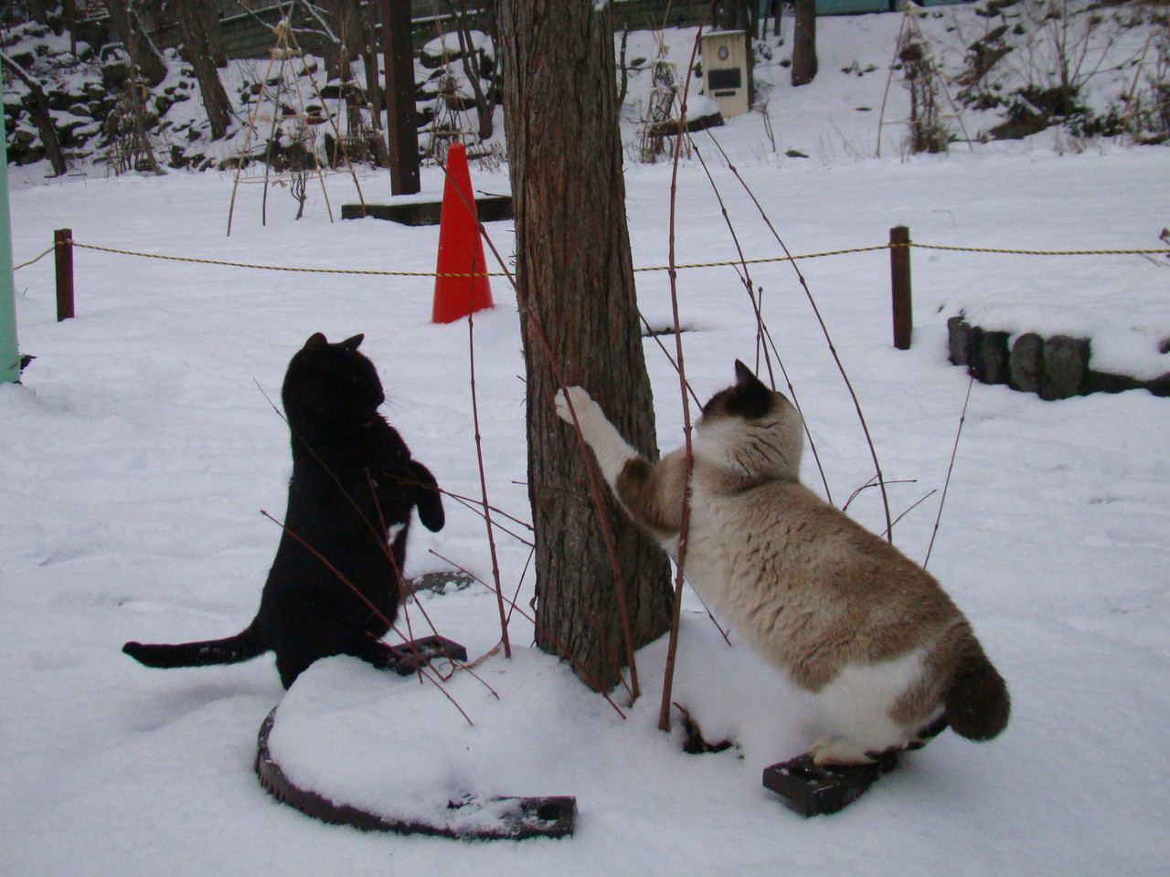 雪の中を元気に、駆け回るノラちゃん きっと綿毛が沢山なのでしょうか?