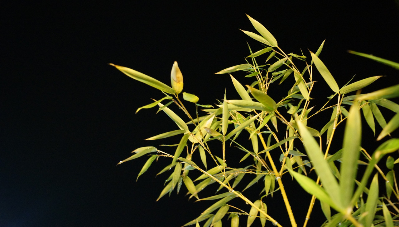 雨上がりの夜空に浮かぶ笹。 きれいな、緑色です。