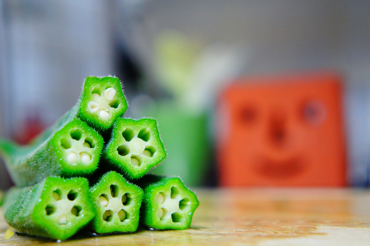 オクラの断面ってサクラ型♪ 鰹節とお醤油でいただきました(^u^)