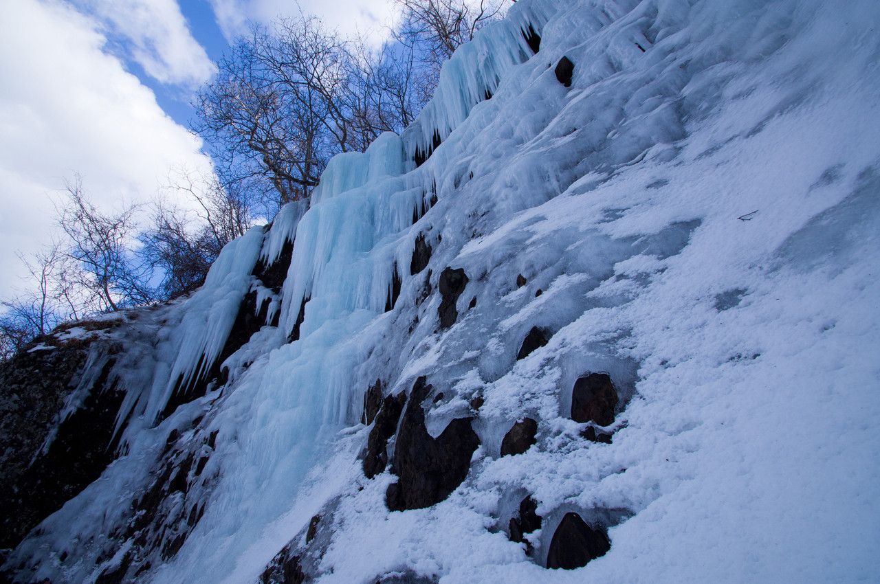 函館の無名滝が氷瀑になっていました。