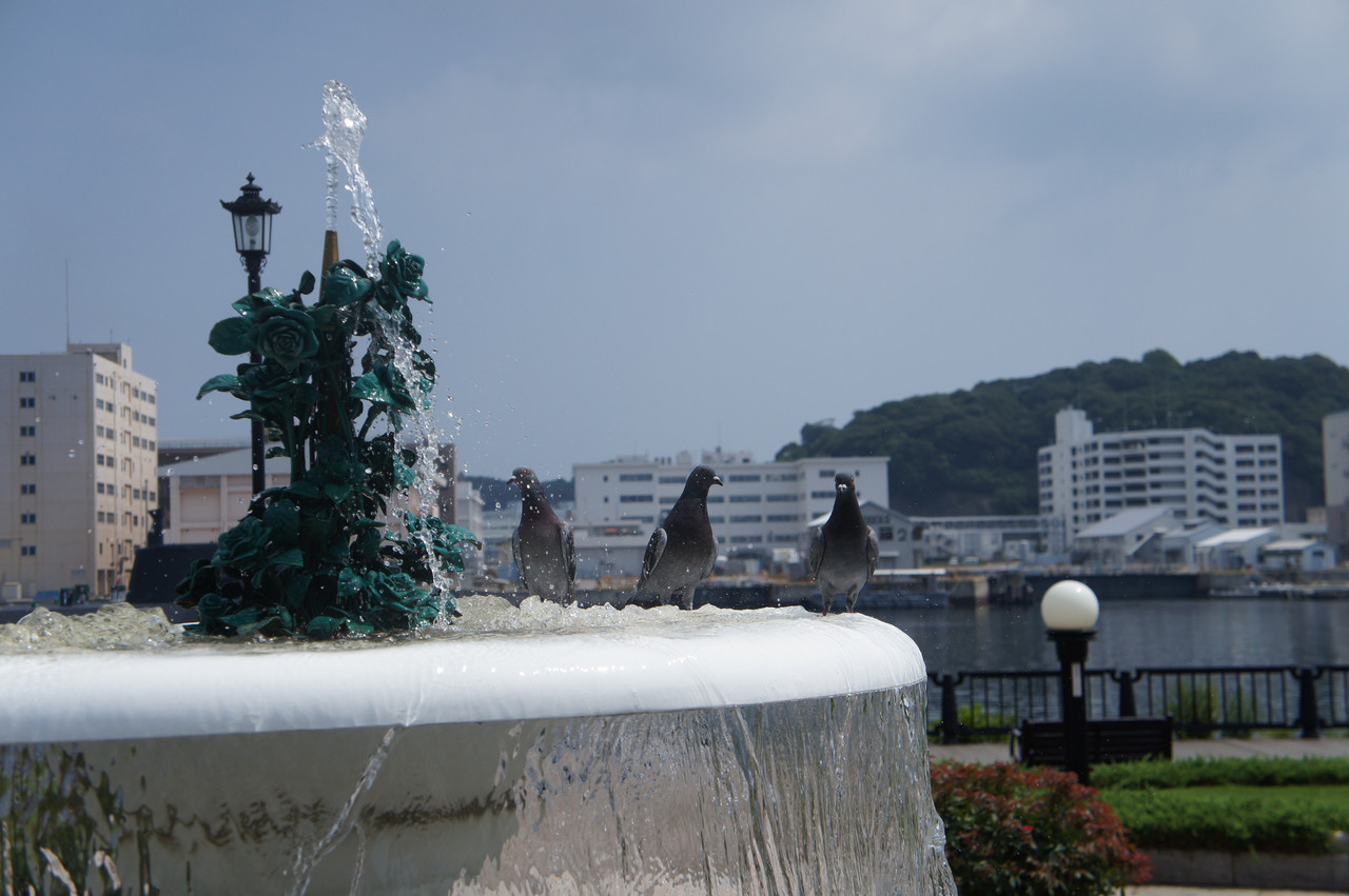 って文句言っていそうな鳩たちです。 夏に横須賀いった時に撮りました。