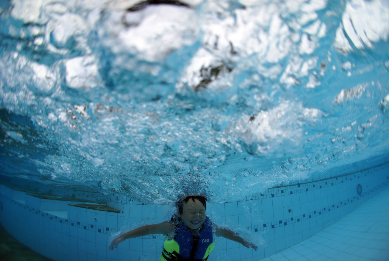 息子の初めての飛び込みを水中で待機して撮った1コマ。