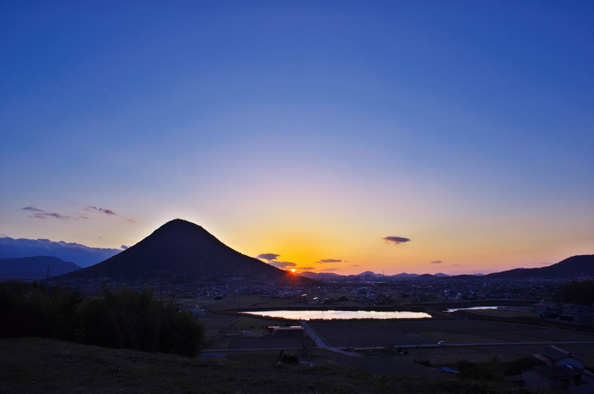飯野山の山裾に日が沈みます。