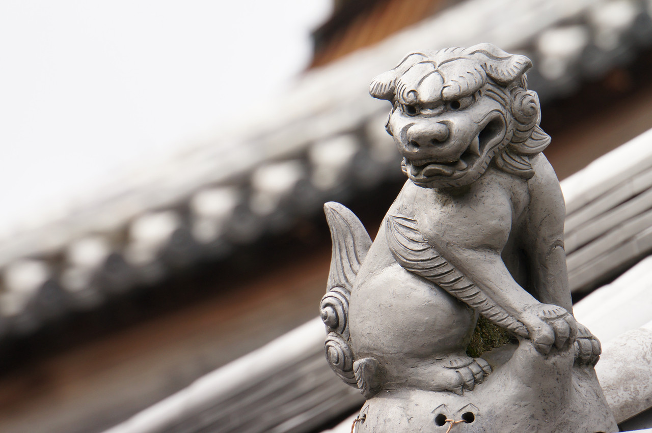 屋根の上の凛々しい獅子さん
