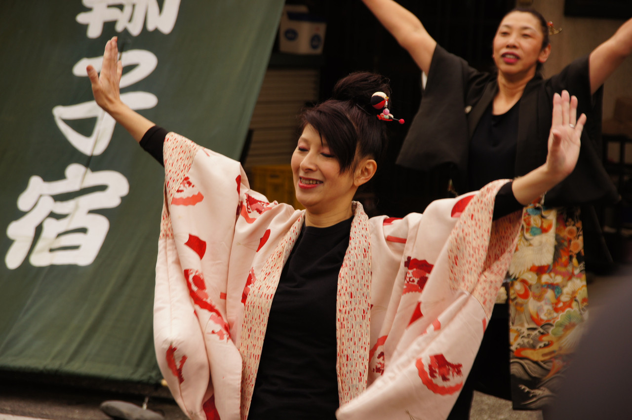 花魁と同じ宿場祭りの地踊りの一人。 こちらは間違いなく女性です。