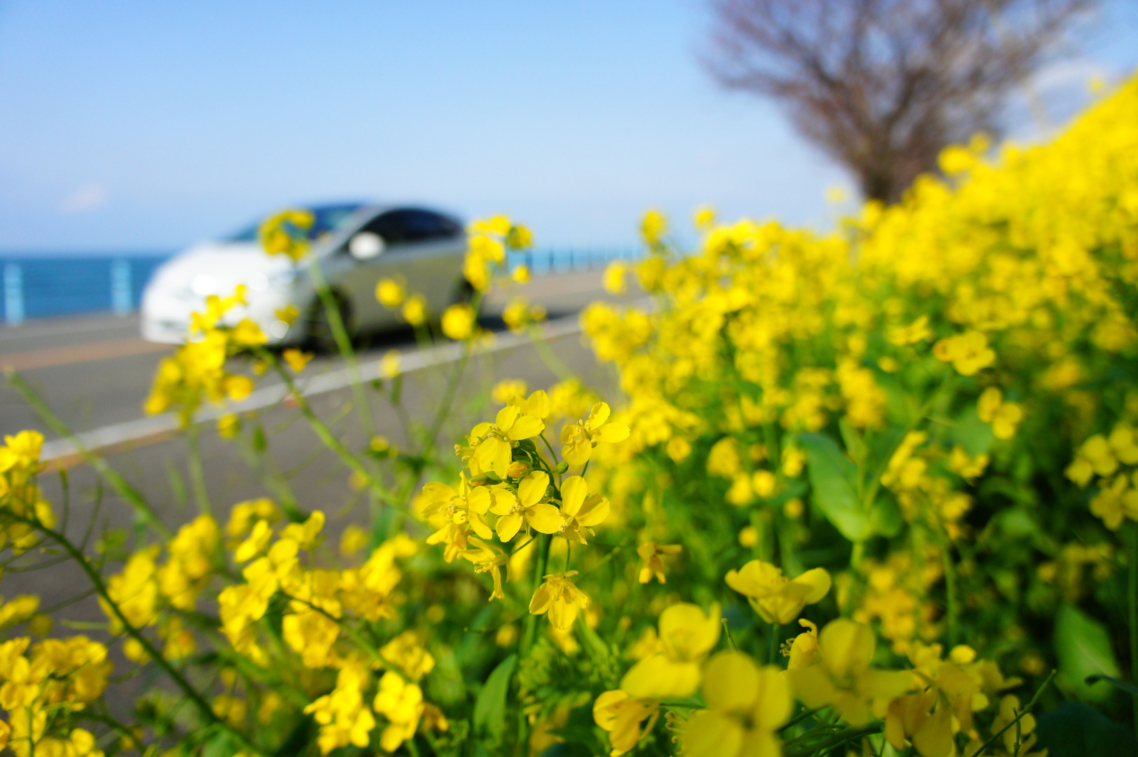中国・四国をツーリングしてきました。 四国の夕やけこやけラインを走っていると、菜の花が咲き誇ってました。地元では有名なところなのでしょうか、結構人もいました。