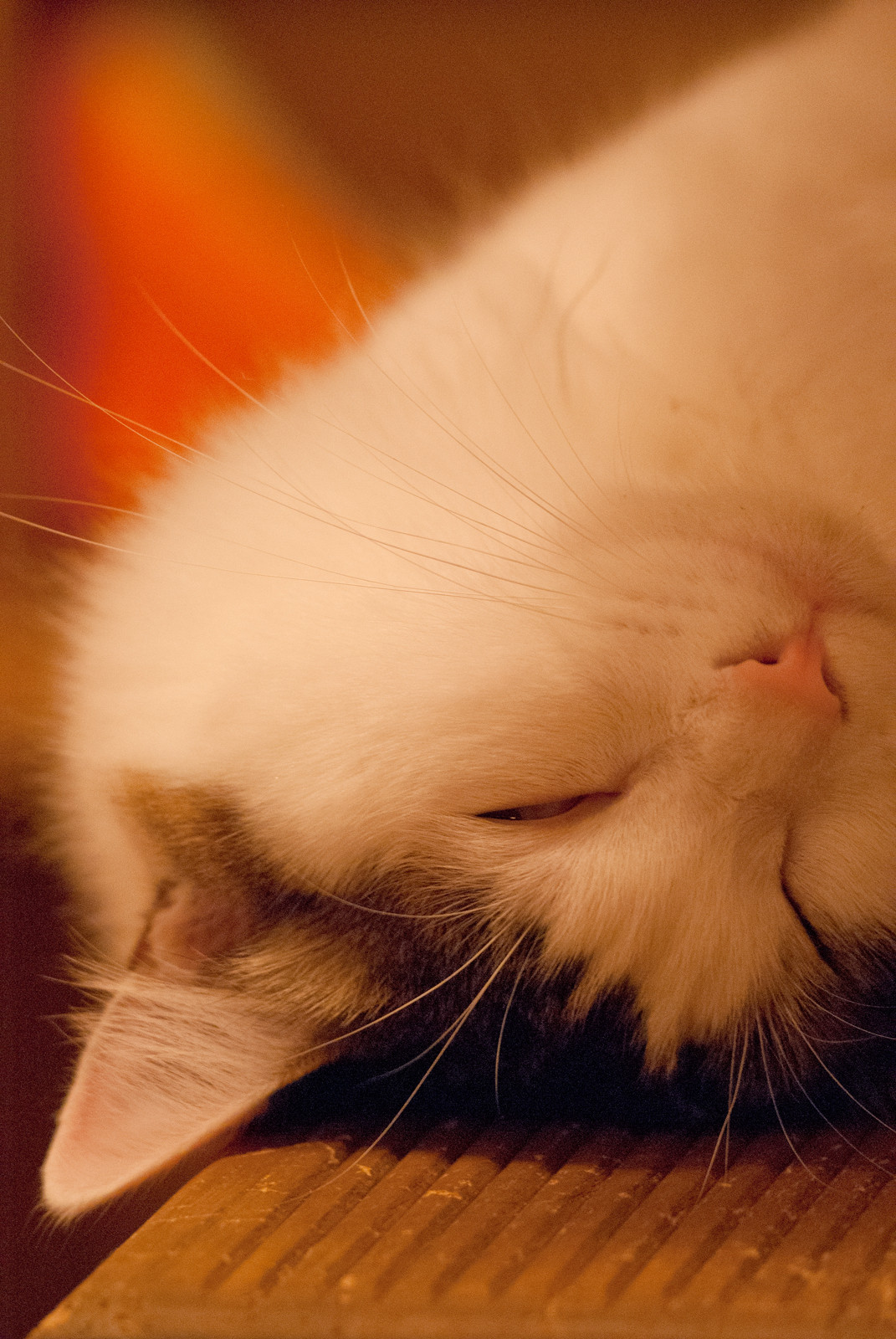 愉快な体勢で寝ていました :) 毛のフワフワ感が素敵なネコ様をパチリ。