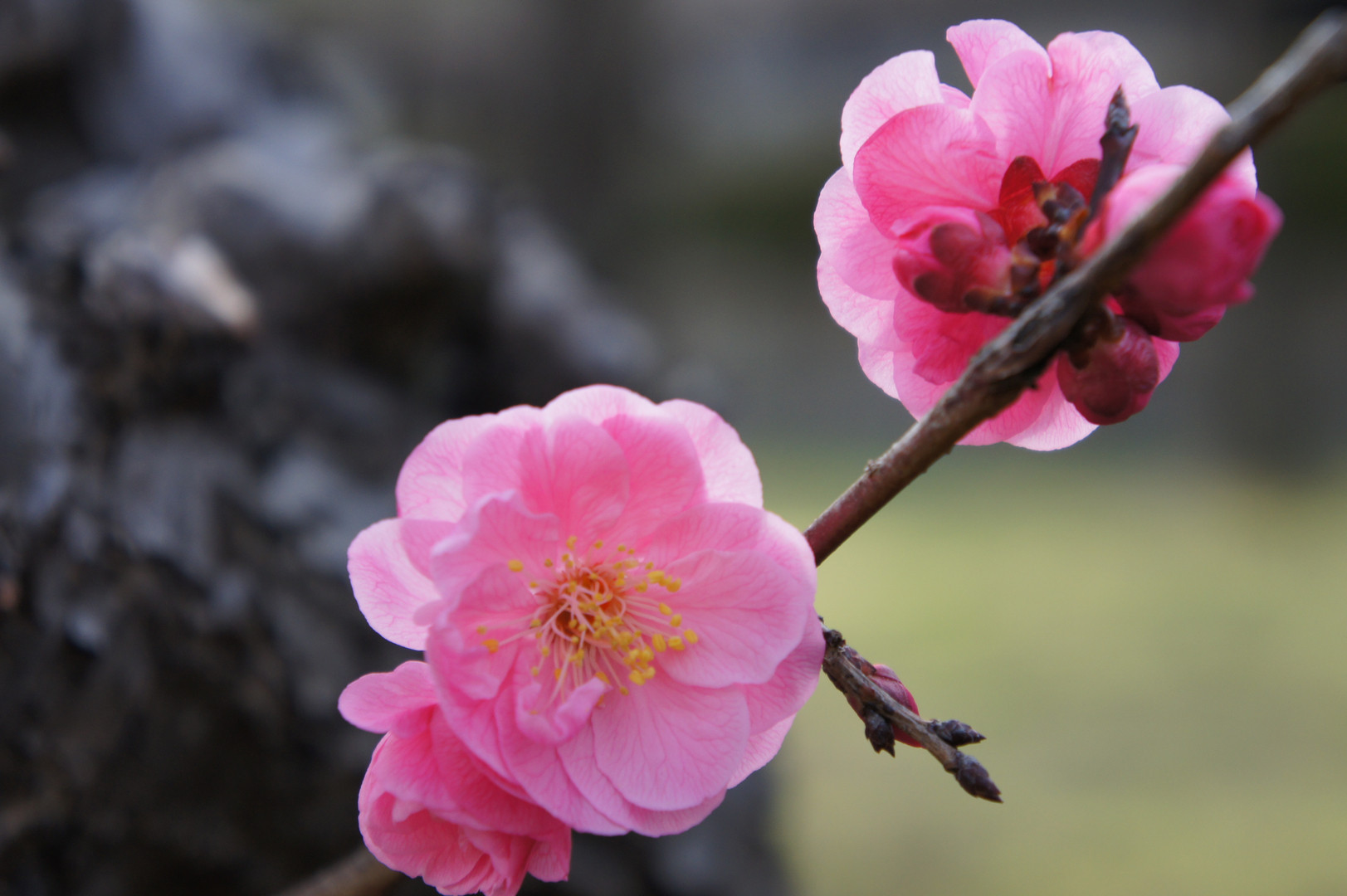 万博記念公園の梅林で接写、とても綺麗な花びらなので透かして撮ってみました。