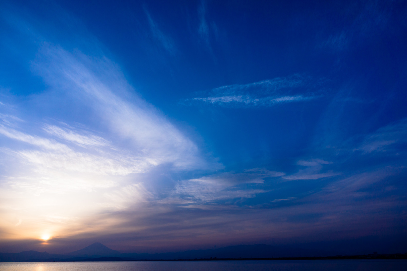 江ノ島から見た海と空です。 少し青を強くして現像してみました。うっすら見えるのは富士山です。 後で気づいたんですが、センサーにゴミが・・・。 ブロワーでも取れない(水滴の跡??)のでサービスセンター行きです;; ミラーレスはここを気をつけないといけないですね。