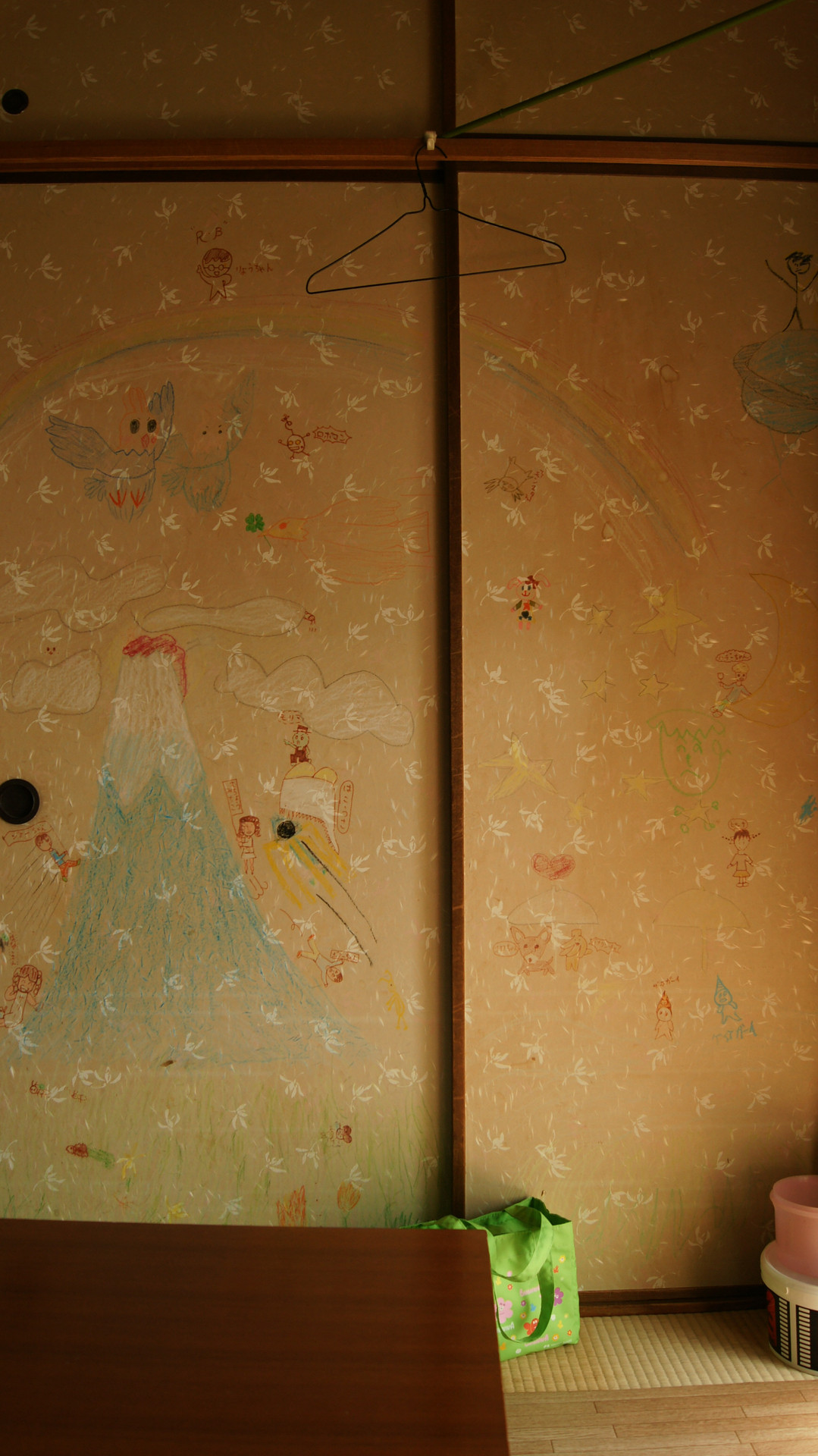 なつかしい、ふすまへの落書き。自分もやったし子供も楽しそうなので注意できず・・・