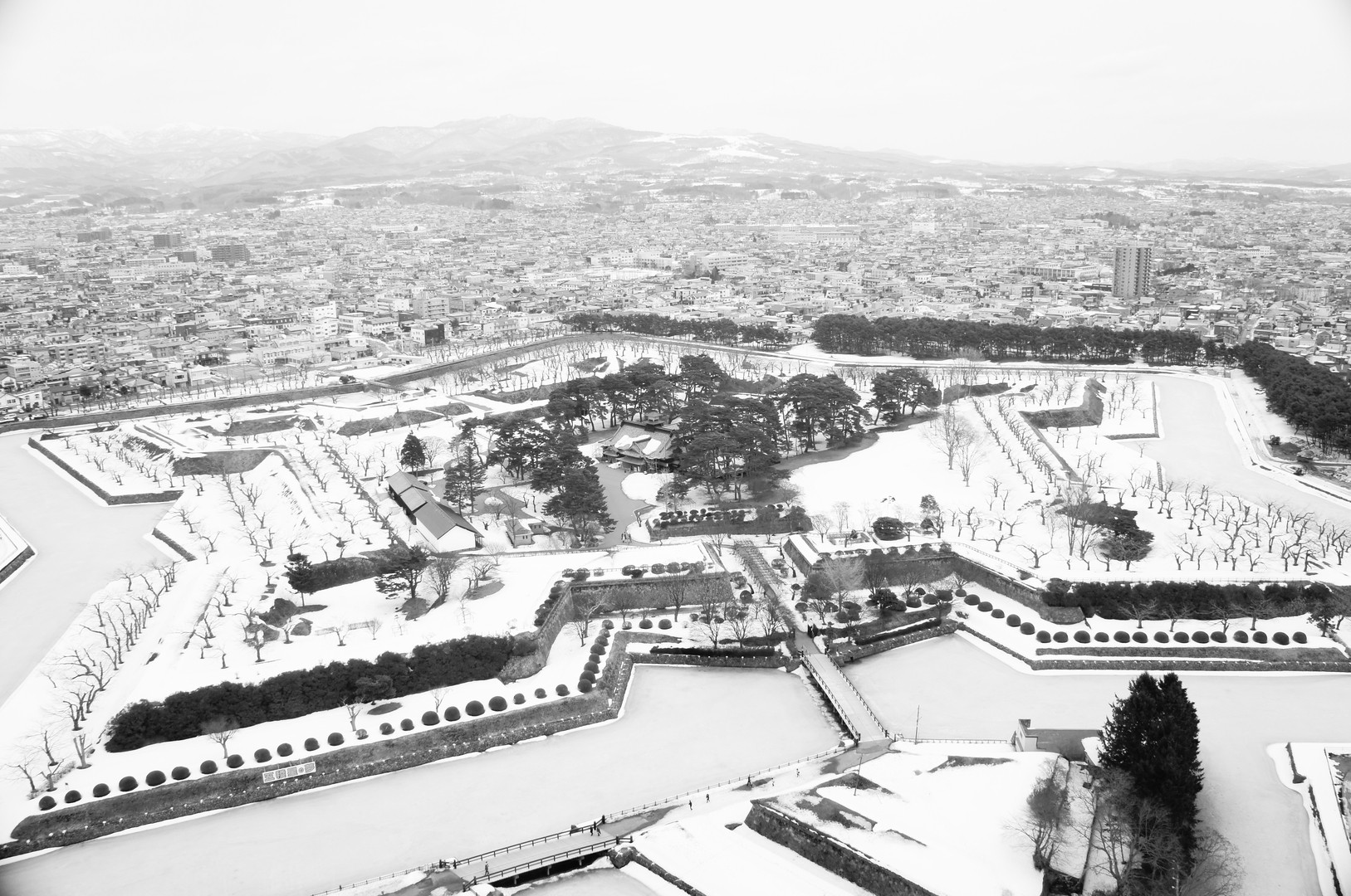 函館行ってきました。 ベタですが五稜郭。 見ごろはGWの桜の季節だそうですが、 この日はまだお堀さえ全面凍結。 雪の結晶・・・に見えなくもない?