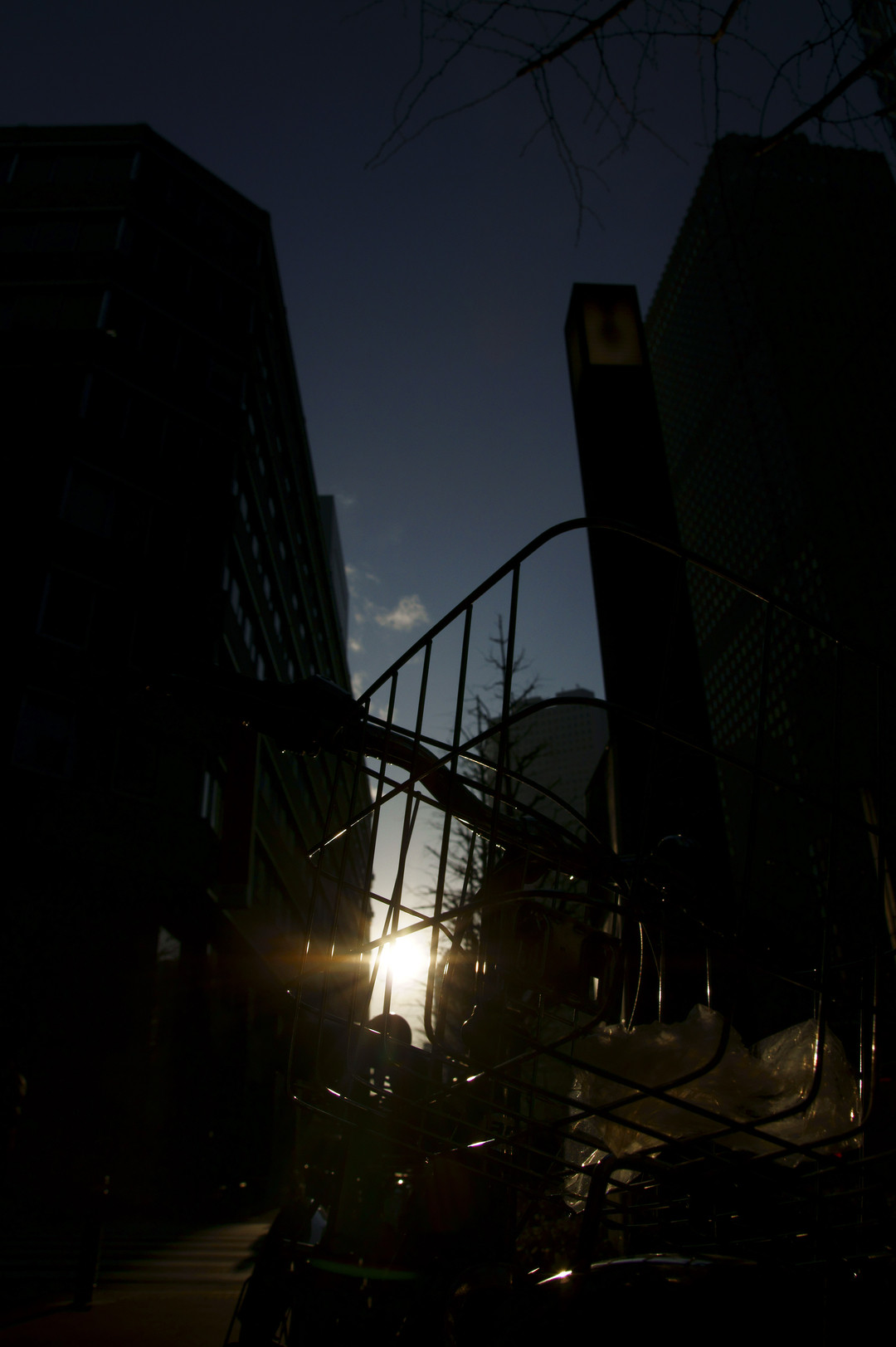 雨上がりの太陽が綺麗だったので自転車のかご越しに撮ってみました!