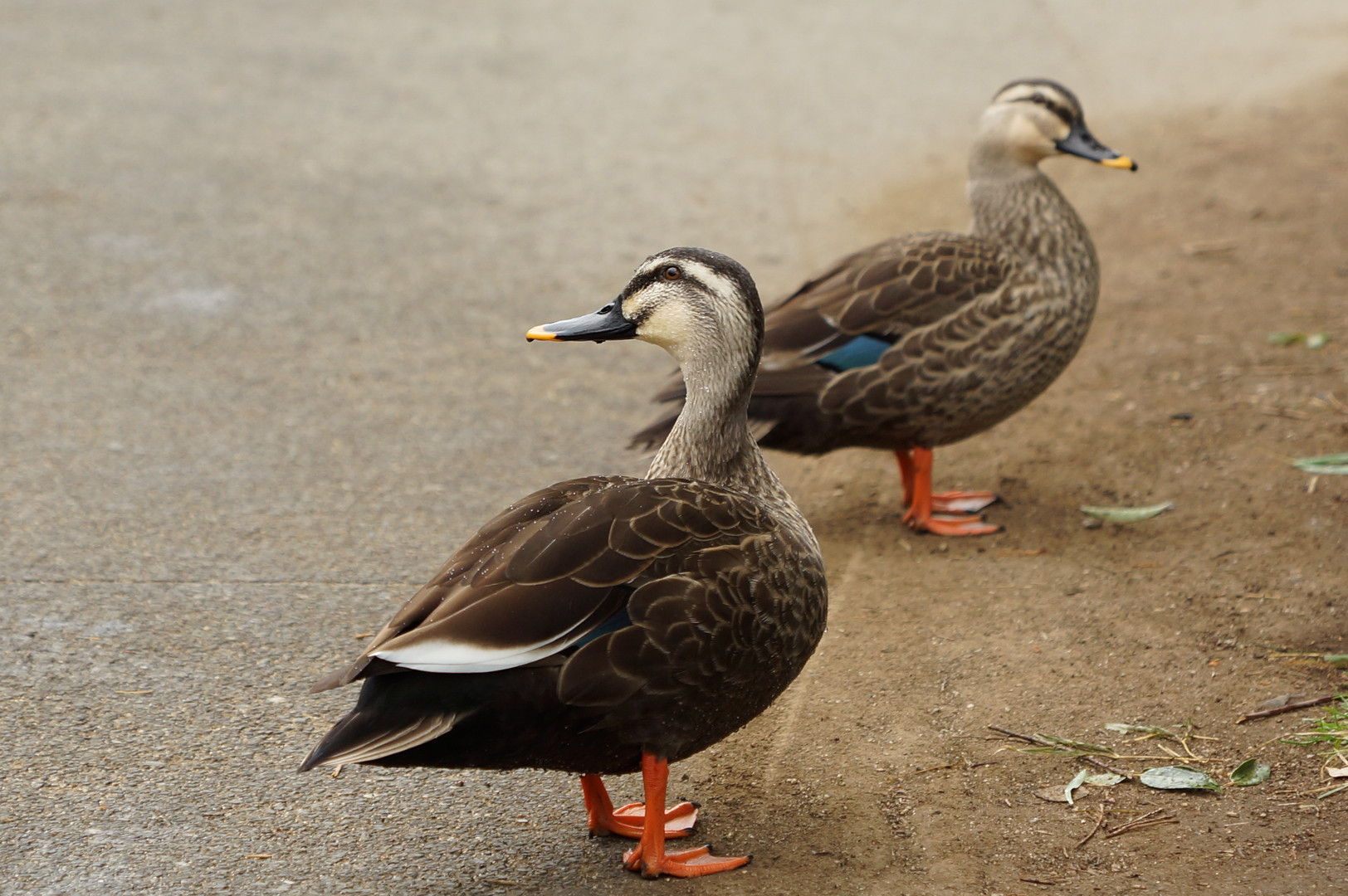 生憎の天気。雨の降り始めで、羽毛に水滴が。近所の公園の住人です。