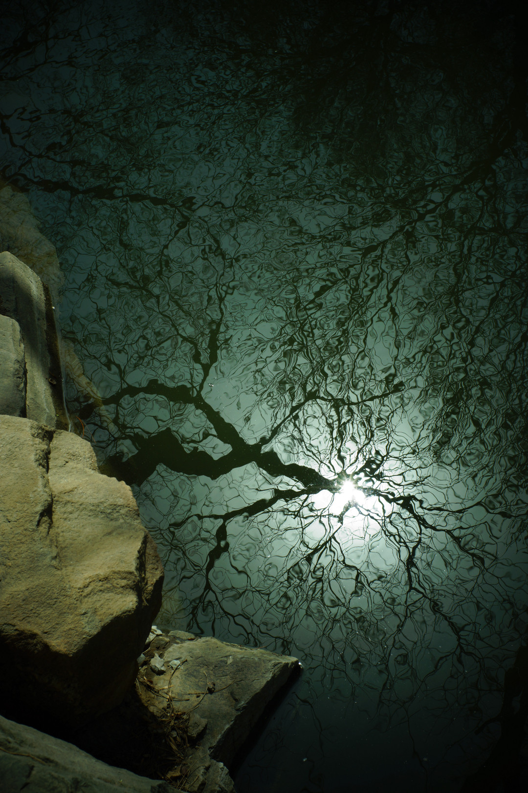 北京大学構内の池に写った柳の枝が、水面に揺れてシナプスの様。