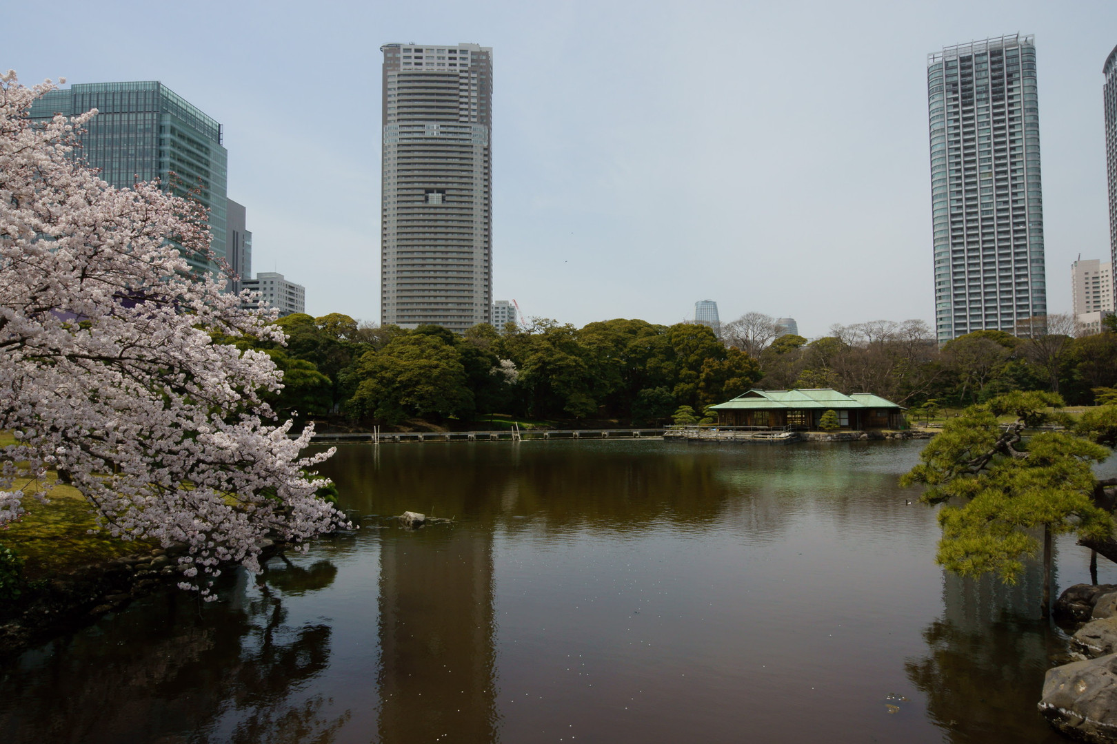 元々は将軍家の大名庭園であった、浜離宮。この池は海水で、潮の満ち引きにあわせ、その趣を変えていきます。