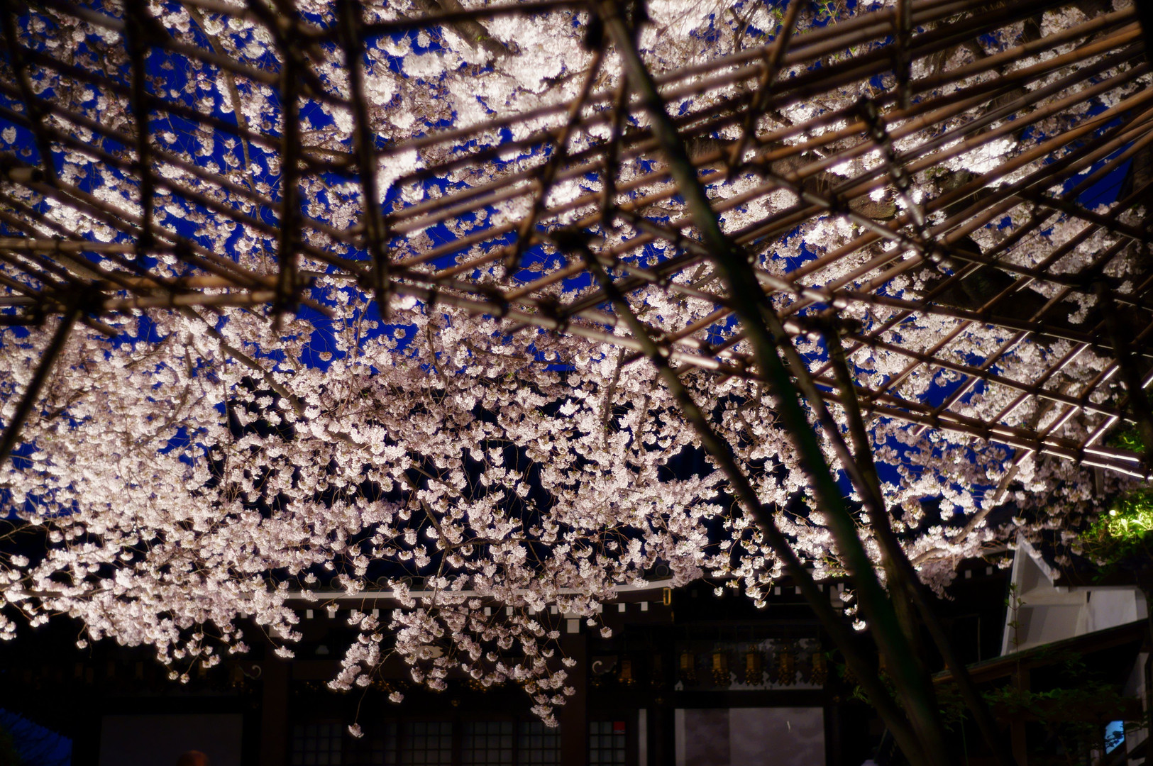 狭い境内を覆うように咲いている桜がライトアップされていてきれいでした。
