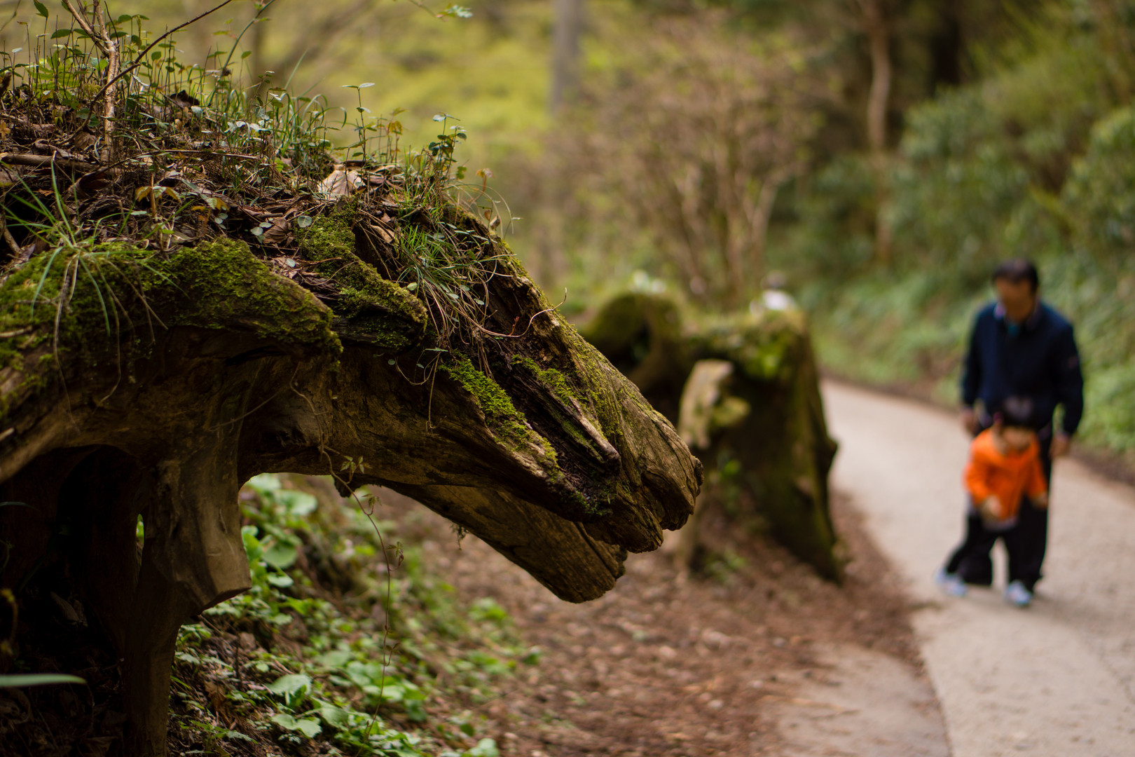 高尾山の山道にて。 木のウネが、もののけ姫に出てくる狼のように見えました。