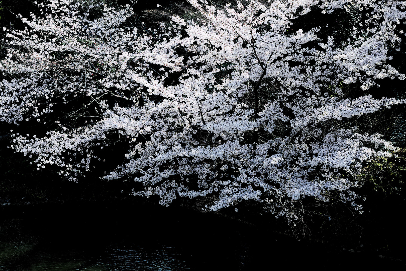 水面に浮かぶ桜の白さに目を奪われる 目白 椿山荘にて Nikkor50mm F5.6