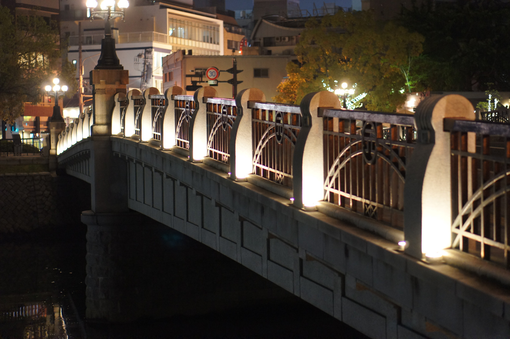 広島平和公園の元安橋です。ライティングがあまりにもキレイだったので撮ってみました。