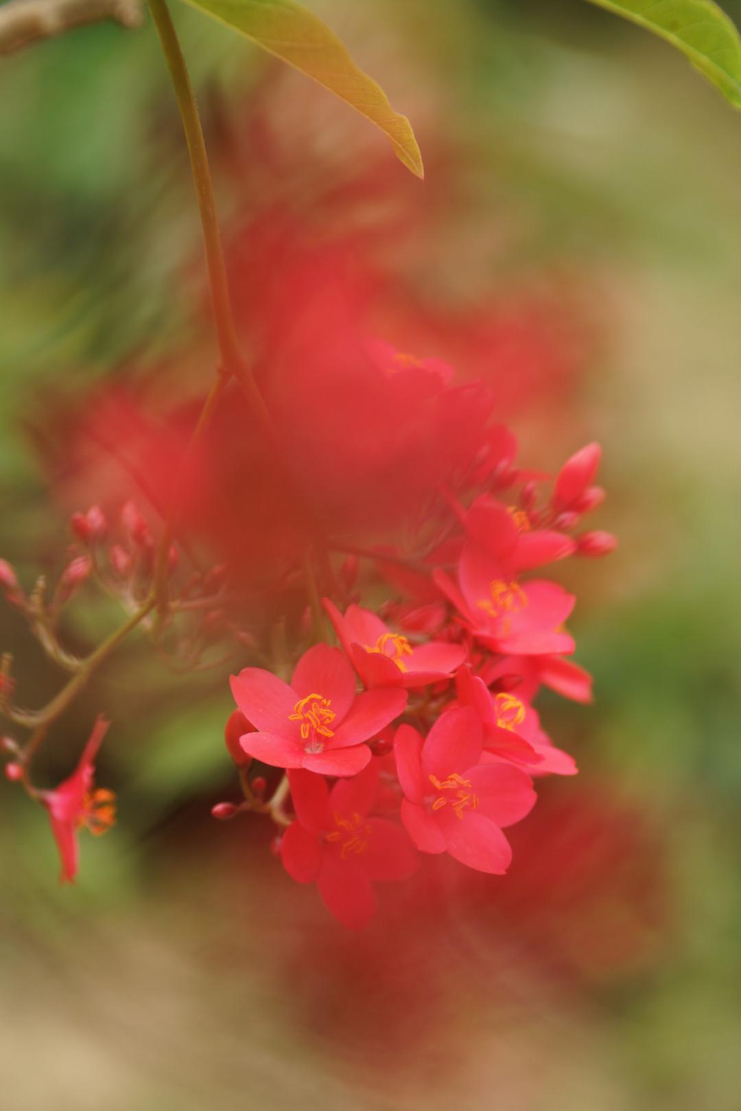 テイキンザクラという花らしいです。 確かに、花びらは桜のようですが、色や質感は南国の花ですね。 前ボケを取り入れてみたのですが、かなり揺れて、揺れて。。 ならば、揺れた感じもいいかなと思っての掲載です。 jpg撮って出し。