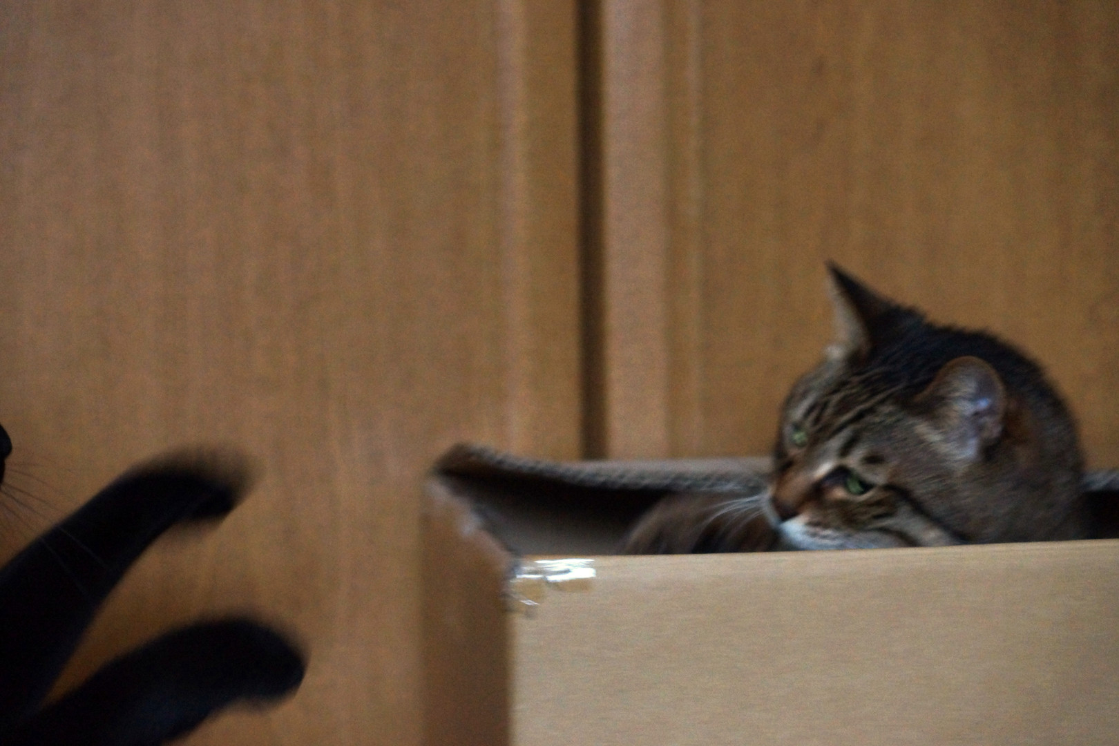 製品情報>My Sony>αcafe>段ボールに入ろうとしたジジに猫パンチ !!(としぼ~さん)