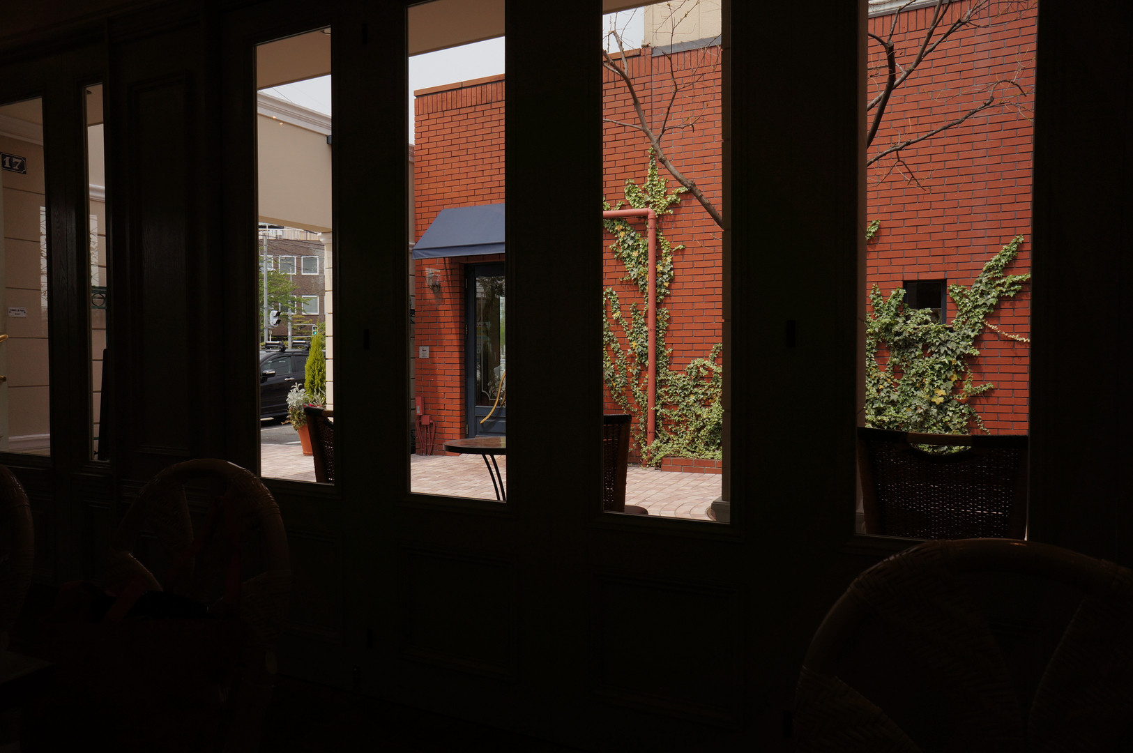 自宅近くのカフェその4。 「内と外の光の差」を出したくて、撮った一枚。 今日はとても暑くて、外の日差しは夏のようでした。 このコントラストが夏っぽいな~と・・・。