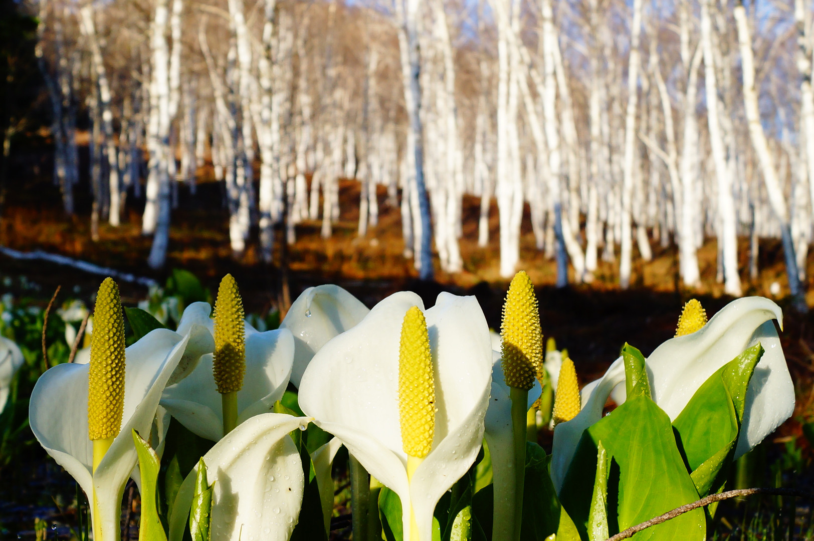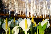 春の訪れ水芭蕉と白樺を撮ってみました。
