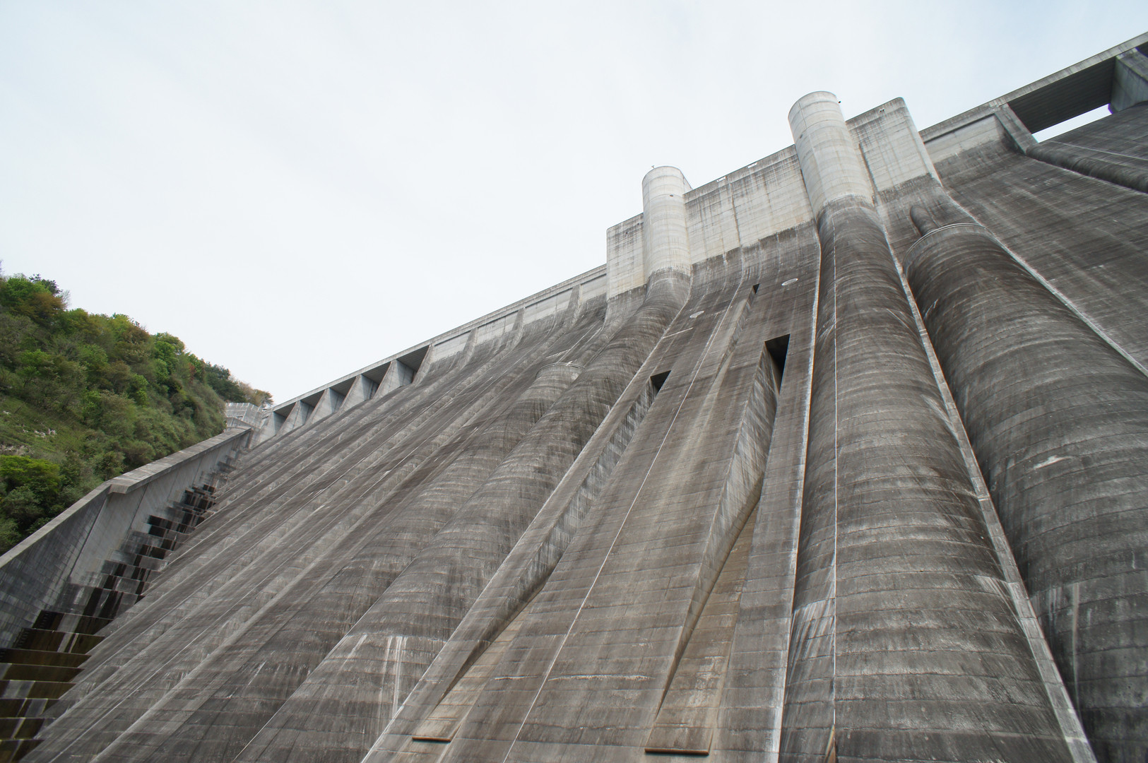 エレベーターで下流までおりて 堤体を間近で見学できるダムです。