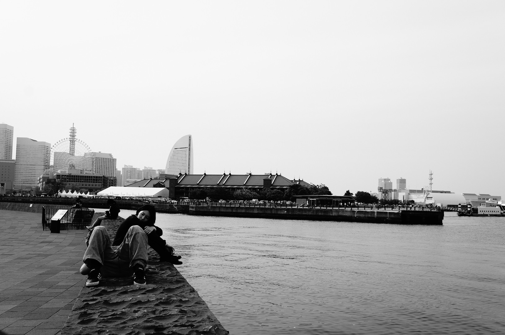 港でくつろぐカップルさん