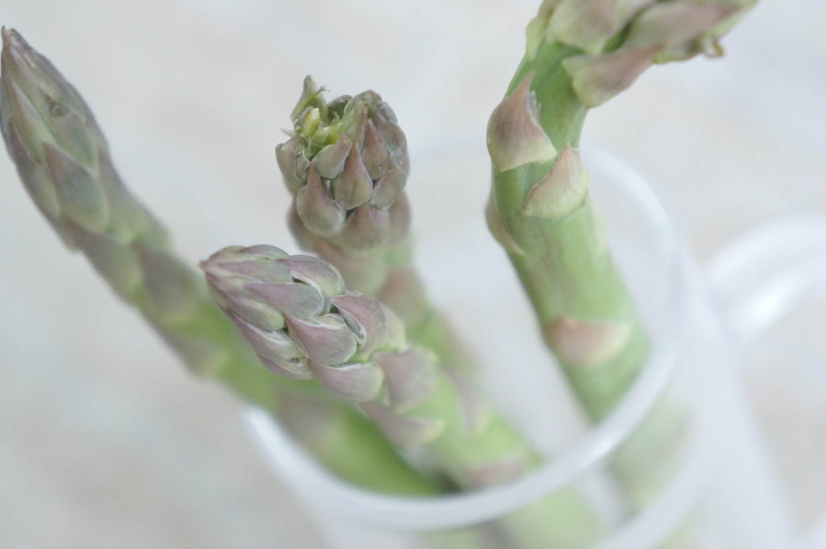 折角のGWなのに、外は激しい雨に風 キッチンにあったアスパラをグラスに入れてパチリ