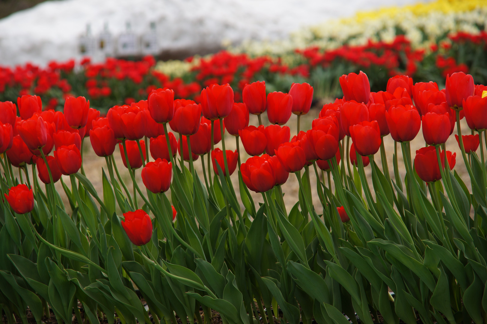 製品情報>My Sony>αcafe>残雪と並んだチューリップ(にこにこ配達さん)