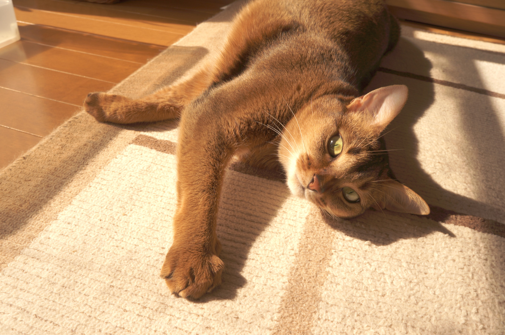 夕方、日の当たる窓辺でごろごろしているところです。
