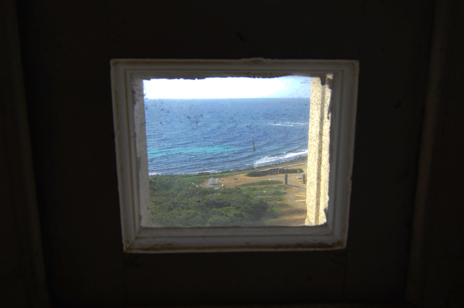 角島灯台の小窓から覗くと、そこには海岸と日本海が広がっていました。 まるで、キャンバスに描いたような、日本海のきれいな景色が撮れました。
