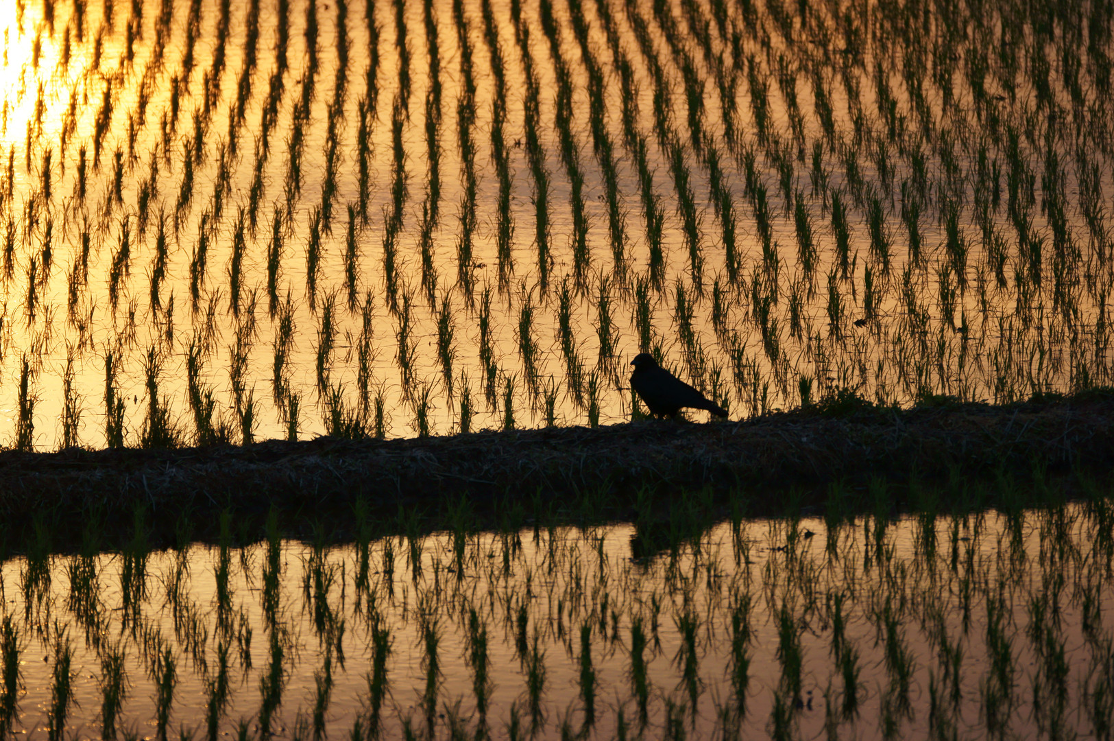 曇ったまま日が暮れるのかと思いきや、雲の切れ間から夕陽が。 ちょっと寄り道、土手の上の細道に車を止めて。