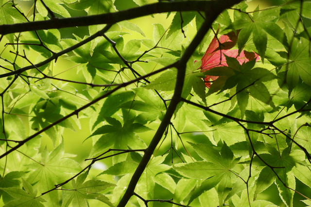 今日もキレイな緑・・・アレ?なんでか1枚だけ?? 赤いはっぱがちゃんとしてなくて残念。 2枚目もキレイに緑がとれたので。