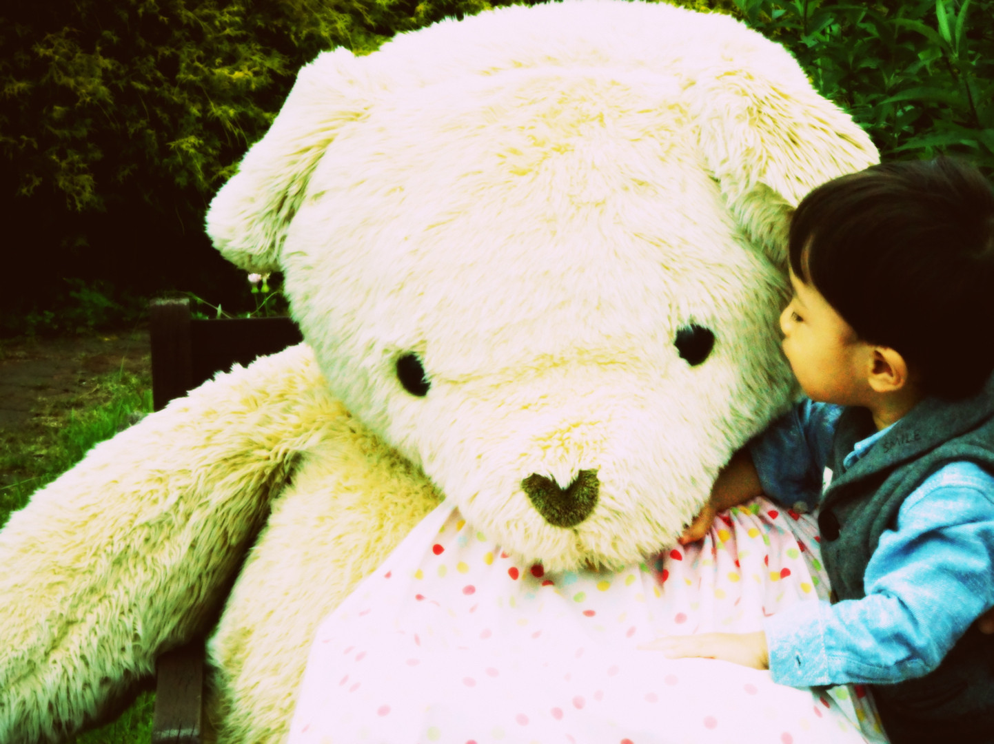 男の子ですが、ぬいぐるみ系が大好きです(^^) いつか本物を見に連れていきたいですね~ チューしてるようにも見えます…?