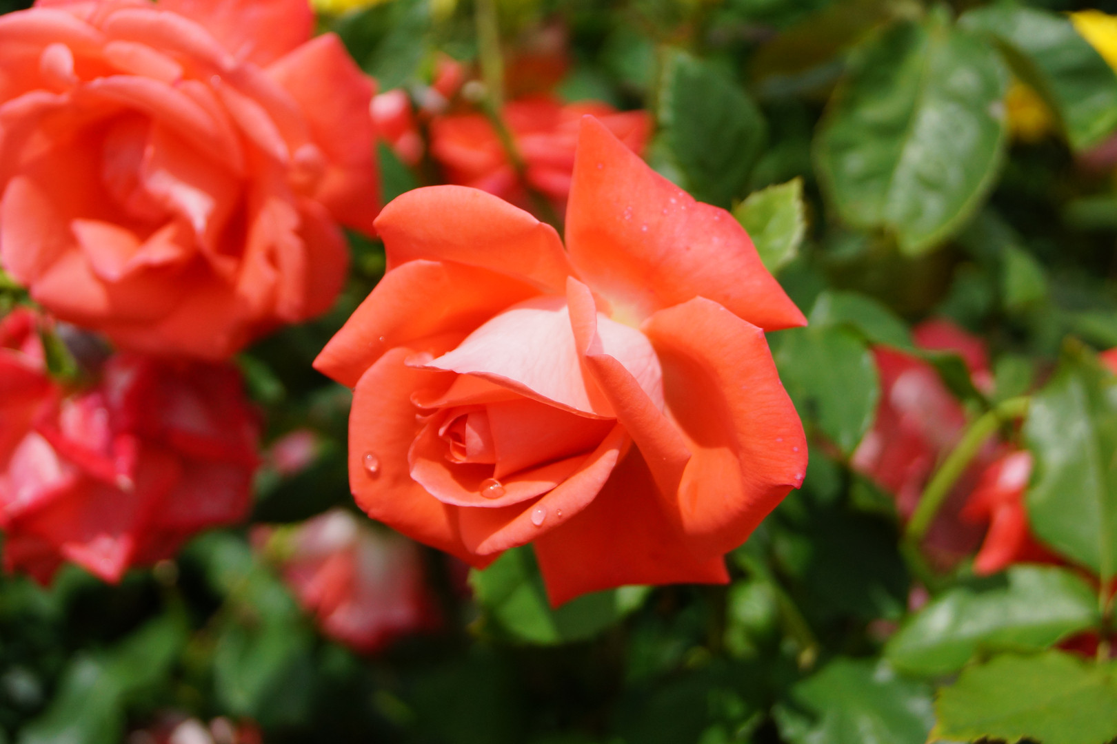 昨日の雨が止んで、今日は朝から快晴。バラ園に行って、初めての撮影。 花びらに残る滴が昨日の雨を思い出させます。 それにしても後からJPEGに落とすと、かなり印象が変わることが判りました。 初心者なので、全てが始めたの体験です。