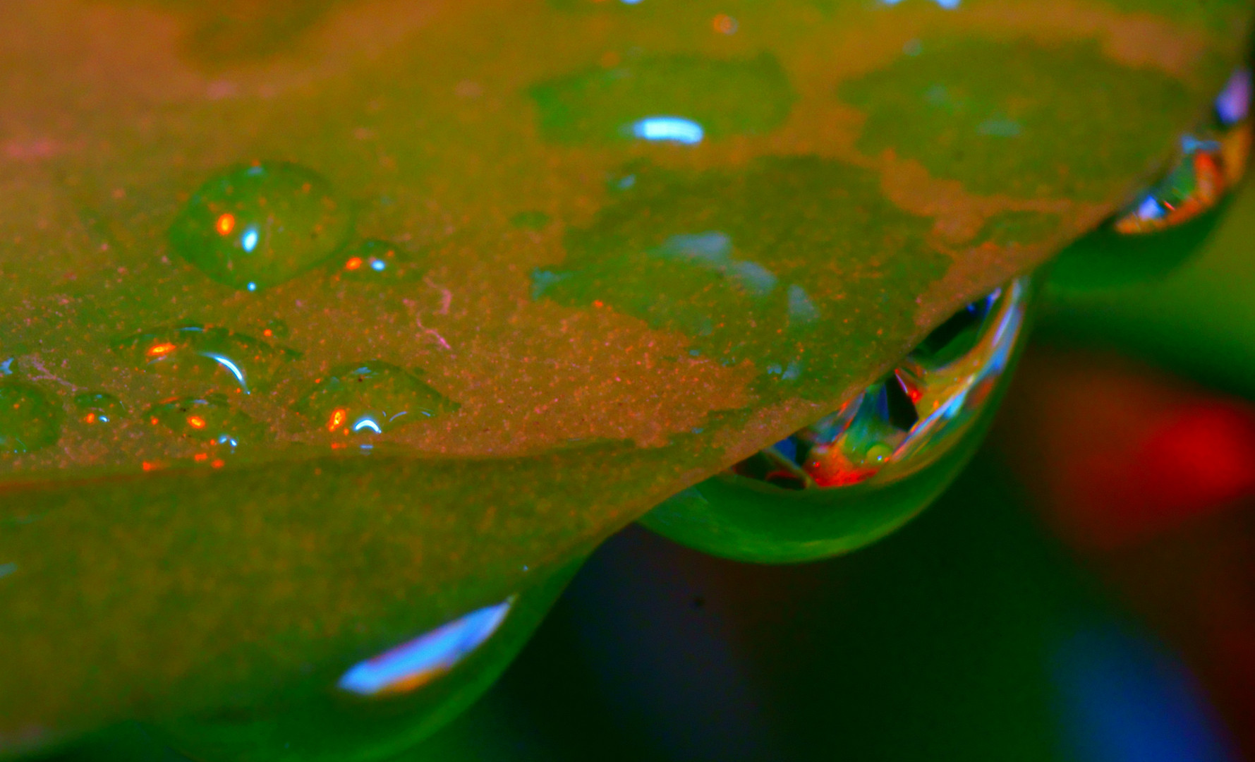 カクタスの葉についた水滴を撮ってみました。 少しライテイングをしています。