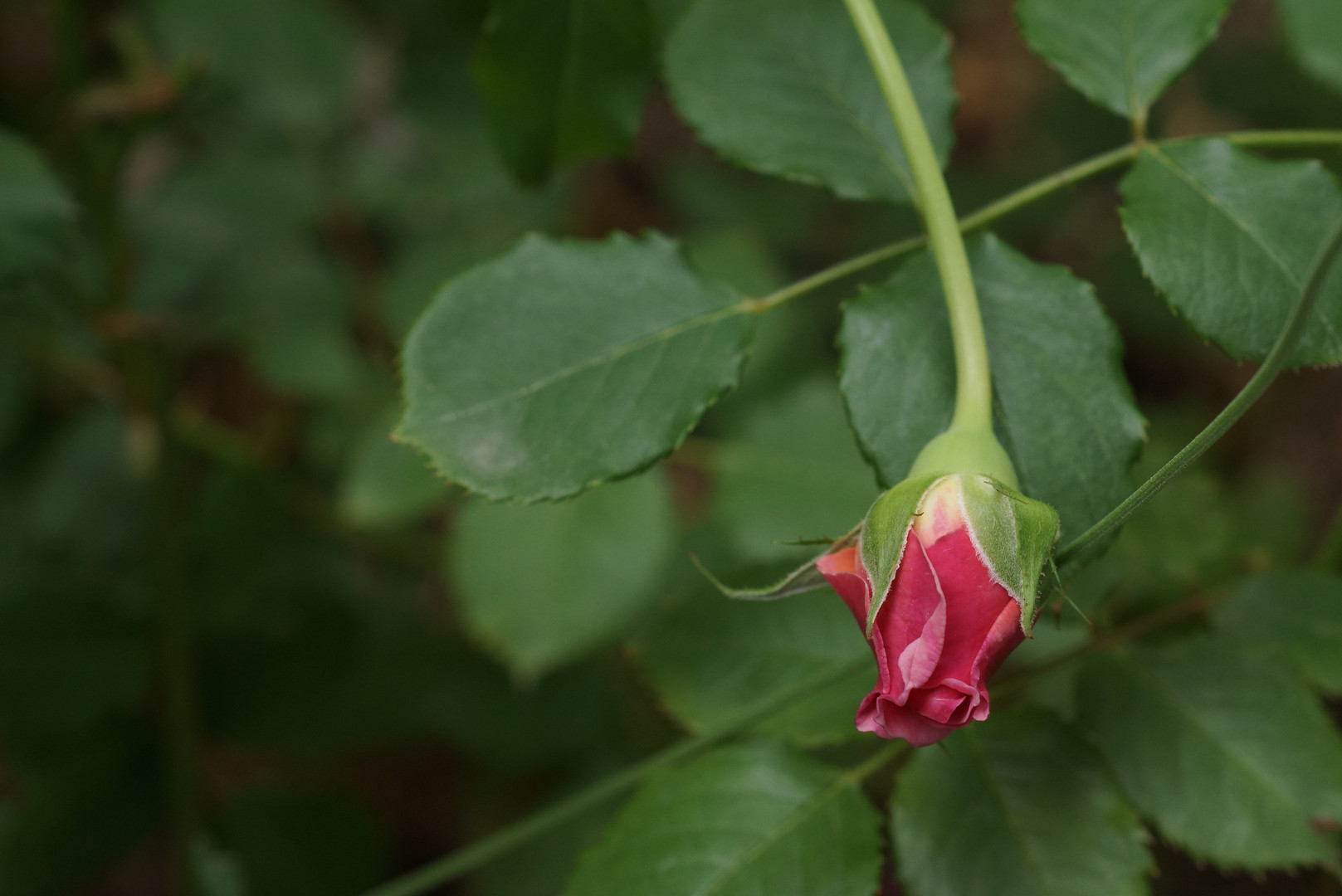 ほころびかけた花弁の先がとても魅力的だと思う 深紅に近いピンク色。開いたらどんな風だろう?