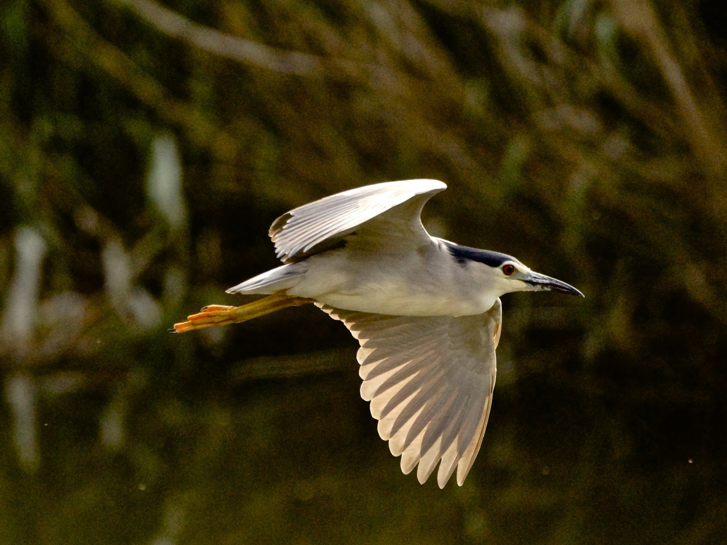 本来、夜行性のゴイサギが日中、優雅に飛んでいました。