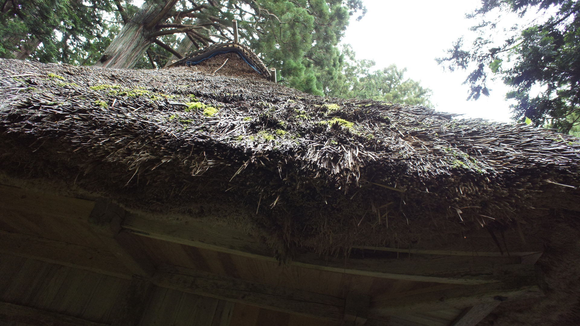 佐渡市安養寺にある羽黒神社能舞台の茅葺屋根です。