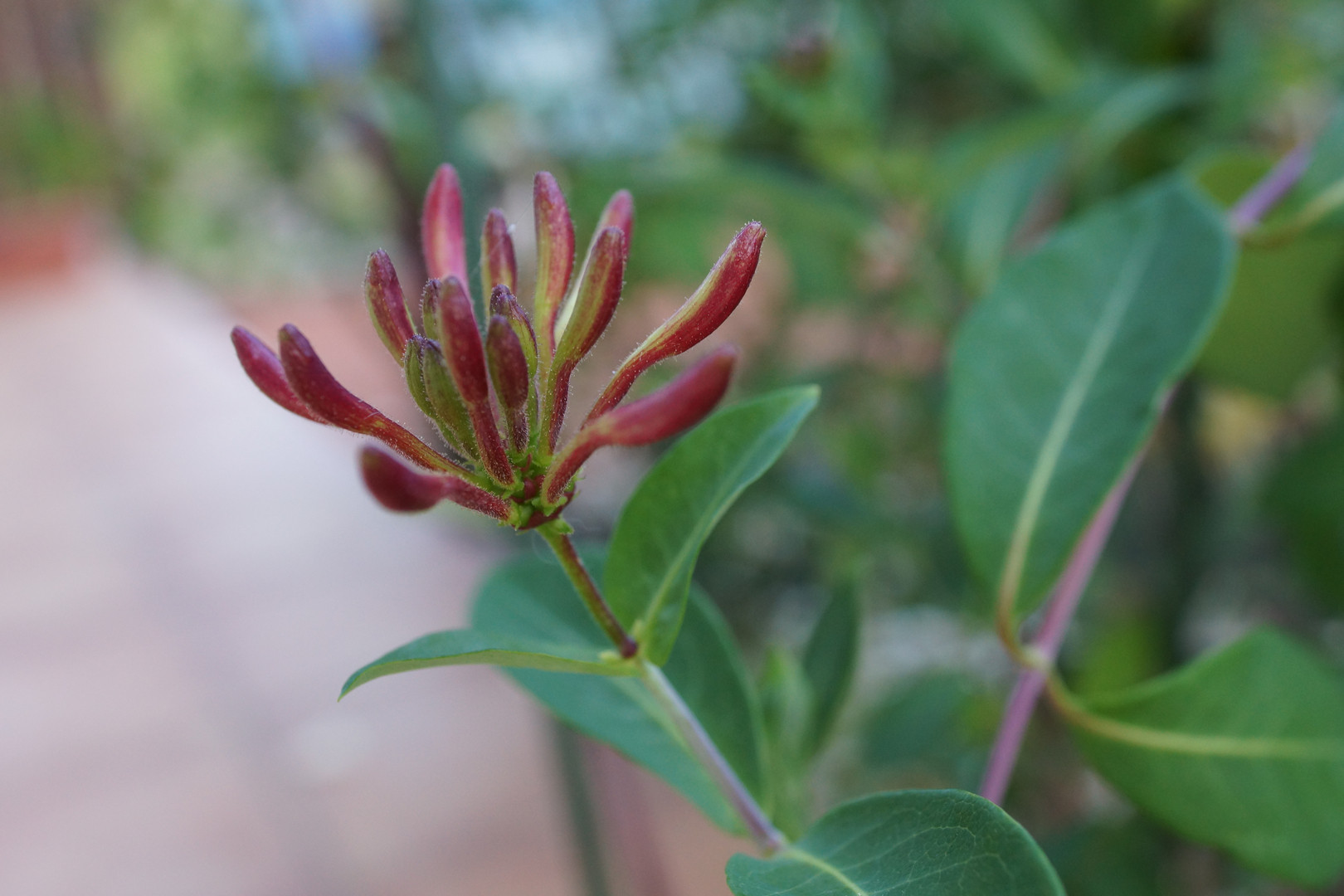 お庭のハニーサックルの蕾です。 開花すると、とっても良い香りがします♪♪