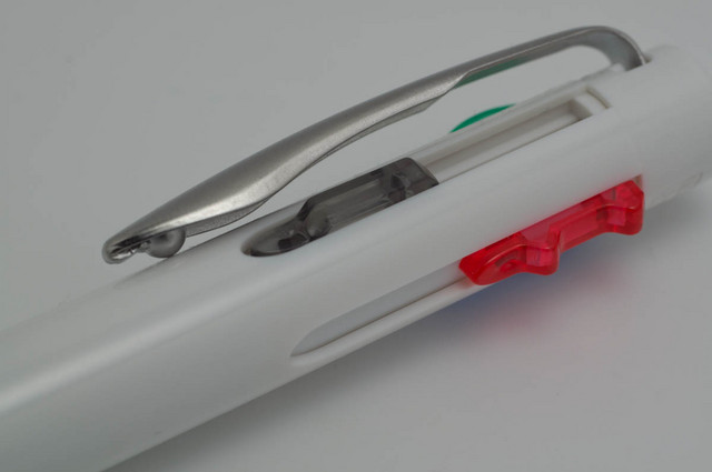 ぐんにゃりした金属クリップが好きです。 上から見てすっきりしてるのもいいところ…かな。 胸ポケットに入れてると、筆記具を上から見る機会が多くなるんです。