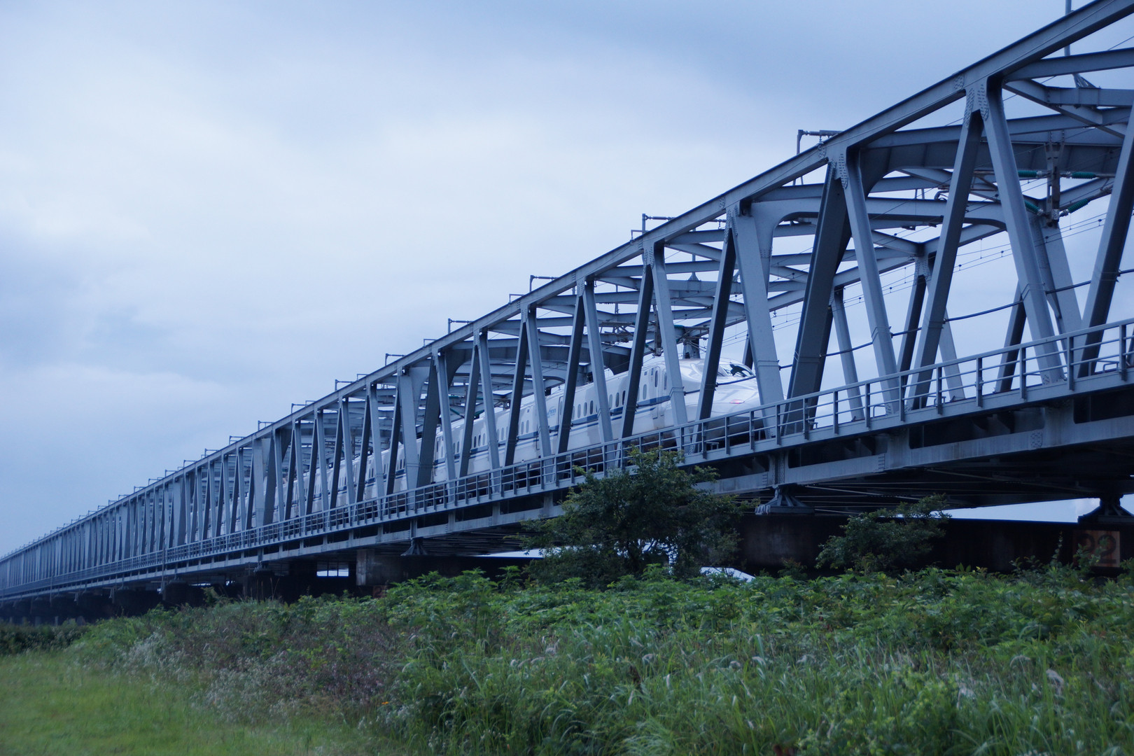 本当は富士山と一緒に撮れたら良かったのですが・・・。 富士川鉄橋の下で新幹線N700系を待ち伏せして撮影しました。