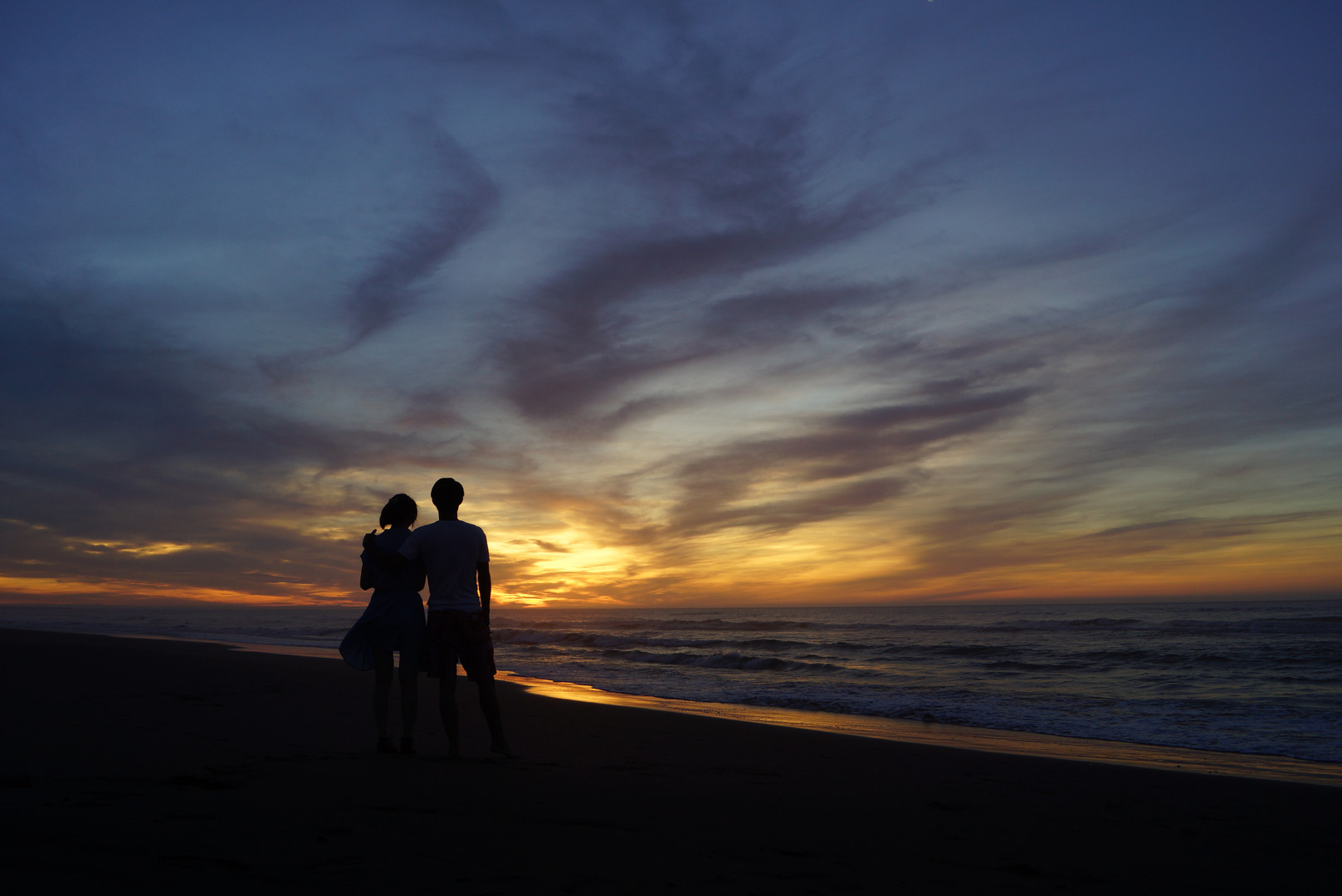 朝焼けの海岸で、二人だけの思いでを大切に。