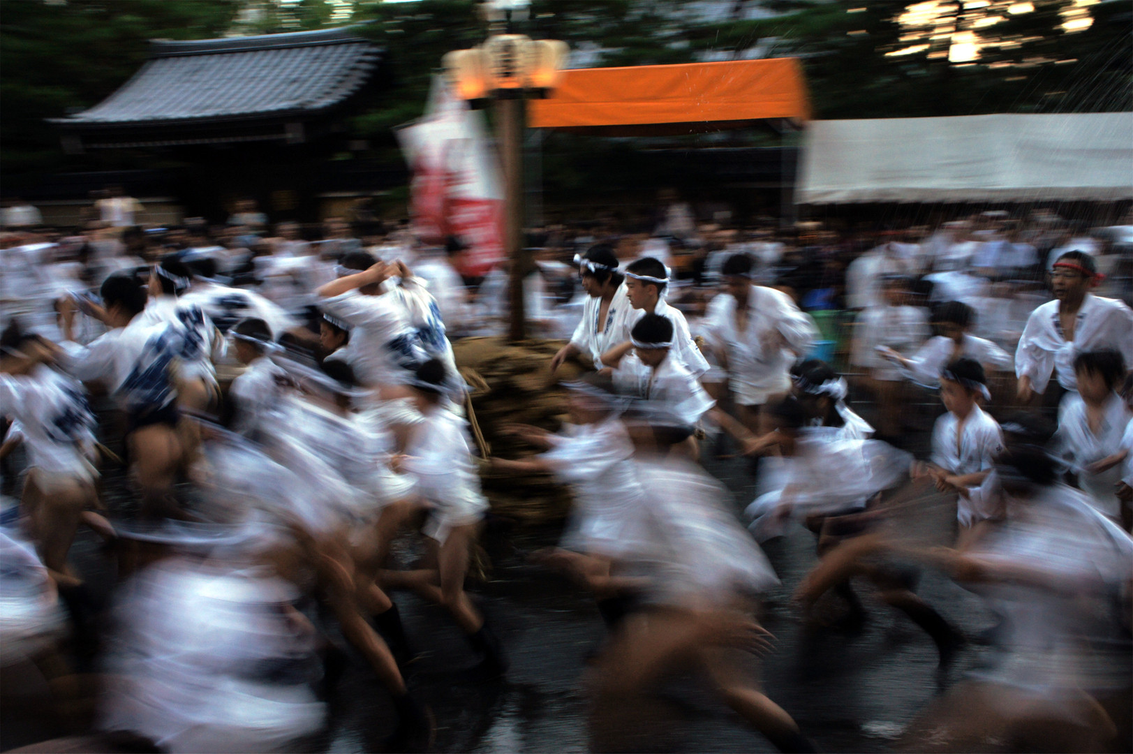 博多祇園山笠(六番山笠・中州流)の先走り。承天寺にて。流れるような動きになって、お気に入りの一枚です。